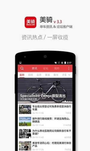 1. 手机看国内外自行车资讯赛事,最新产品评测,新闻头条等必备app;