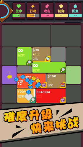 祭坛有次数限制的刷属性可以去副本,副本里边有商店格,可以买攻击防御生命回复行动力还有属性点。
