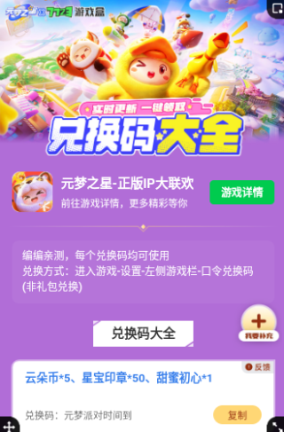 元梦之星礼包工具是一款专为元梦之星游戏玩家量身打造的手机应用程序。该应用旨在帮助玩家更方便地获取元梦之星游戏中的各种礼包和福利。玩家可以通过应用查询到当前可领取的元梦之星游戏礼包,并了解每个礼包的具体内容和领取方式。应用还提供了礼包兑换功能,玩家只需在应用中输入兑换码,即可快速领取对应的礼包。还支持礼包分享功能,玩家可以将获取到的礼包信息快速分享给好友,一起领取更多游戏福利。应用还会定期更新元梦之星游戏中的最新活动,并提供活动提醒功能,玩家不会错过任何一个重要活动福利。有时候礼包数量有限,应用还提供了抢先领取功能,玩家可以在第一时间获取到限量礼包。