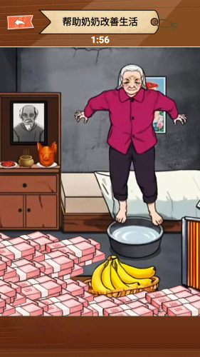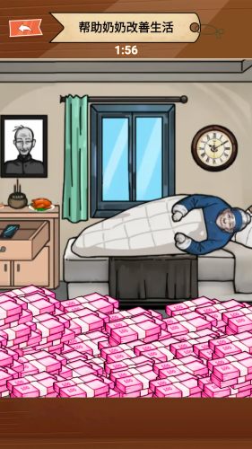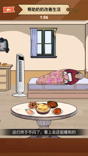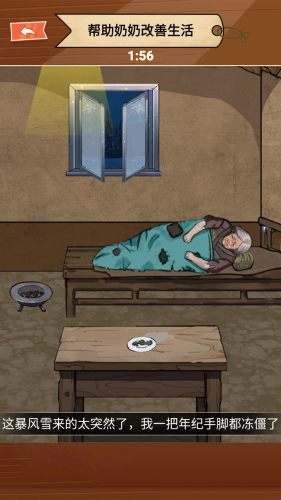 休闲益智游戏,游戏中你需要帮助年老体弱的奶奶过上舒适的日子。通过合理的规划金钱,更新家具和修缮房屋让奶奶暖和起来。