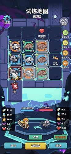 需要自己规划最佳路线,通过技能的组合来享受轻松放置的肉鸽战斗,有上百种不同的组合和搭配,可以创建出不同的流派和打法,当你成功消灭最终BOSS后,将获得丰厚的奖励,用于升级你的英雄和天赋技能等,让你体验到战斗的刺激和策略的乐趣,通过不同的技能组合和战术思考,可以克服各种困难,逐步提升你的实力和排名。