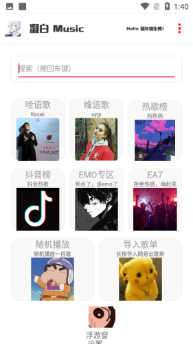 凝白音乐是款好用的音乐播放器,快来进行各种体验吧,热门的音乐实时更新不要错过,丰富的资源一键搜索十分的便捷,高清的音质等着你来感受,快来离线缓存播放吧!
