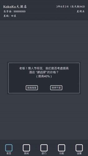 -注重策略经营,需要合理规划和管理酒店的资源,包括人员配置、设施投资、市场营销等,通过制定明智的决策,可以使酒店蓬勃发展。
