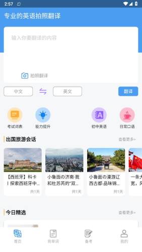 玖珠中英文翻译是一款优质专业的手机翻译软件,为大家提供精准翻译服务。支持中英互译、拍照翻译,还转为广大考生提供了备考学习资讯,感兴趣的话可以下载体验哦。