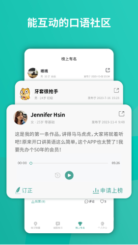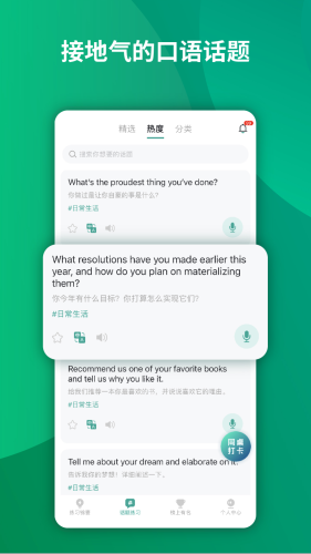 2.智能推荐功能能够确保用户获得自己感兴趣的话题和发布最新的口语学习资源;