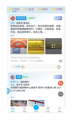 1、信息发布:用户可以自由发布各类商品、活动、服务等信息。