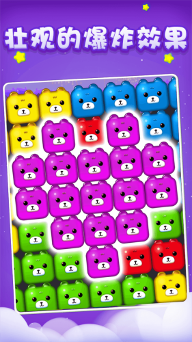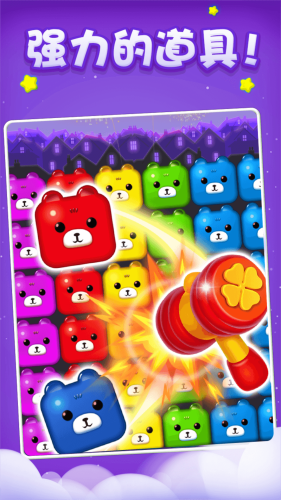 2、游戏操作简单易懂,只需点击两个或更多相邻的同色熊熊方块即可消除它们。但随着关卡的深入,你会发现其中的技巧与策略。