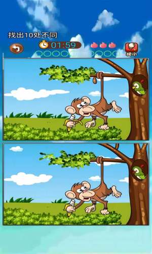 3、要先有限的时间里找到不同点,遇见困难可以点击下方的提示。