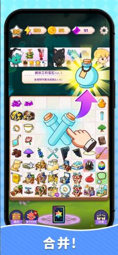 制作魔法合成大亨是休闲益智手游,在游戏玩法简单有趣,玩家只需要在限定的时间内将场景中的魔法道具进行合并,从而创造出更加强大的魔法物品。