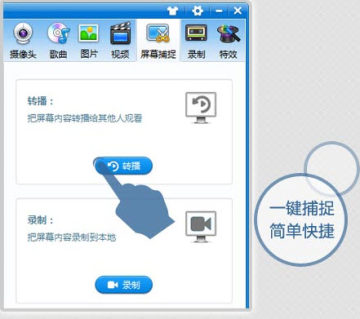 超保证实时的屏幕捕捉功能。想网络转播、在线捕捉视频画面?想把屏幕内容录制到本地?只需按下“转播”或“录制”键,轻松快捷一步完成。