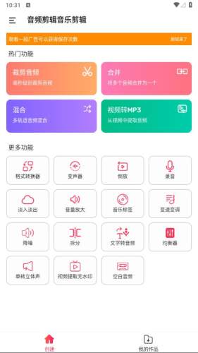·打开【音频剪辑音乐剪辑】,选择主页所需功能