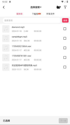 3、音频剪辑:可以对各类型的音频剪切制作,提取你中意的音频;
