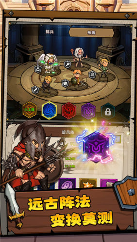 2、游戏提供多种阵法供您选择,不同的阵法拥有不同的效果,您可以根据敌人的特点和自己的英雄搭配出最合适的阵法,以发挥最大的战斗效果。