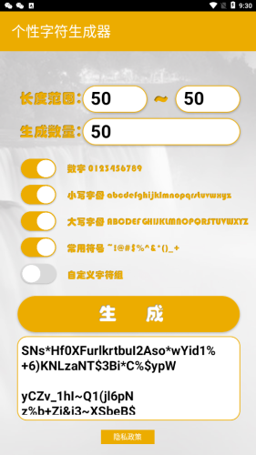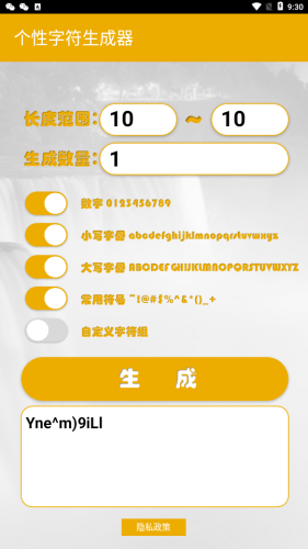 个性字符生成器是款好用的工具软件,快来选择不同的符号进行生成吧,一键设置不同的参数来进行挑战,在线生成来满足用户的需求,超小的软件占比使用起来十分的便捷,感兴趣的小伙伴快来加入我们吧!