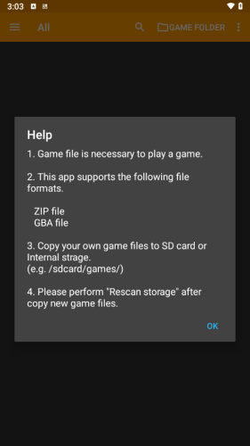 1、John GBA模拟器最新版内不提供游戏资源,玩家在使用前需要先将您自己的游戏文件复制到sd卡,或Internalstrage