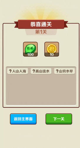 虽然是单机游戏,但是闯关答对成语就能获得红包。