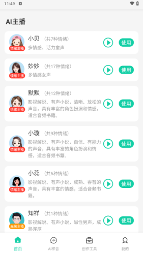 AI配音:支持多人配音,拥有多款情绪丰富的AI主播,配音作品提供免费多平台同步,可以随时随地,在不同平台完成配音。
