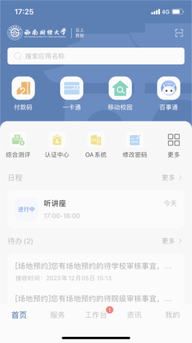 云上西财安卓版APP,西南财经大学校园服务平台,发布校园最新资讯信息,关注校园动态,提供便捷的校园服务,校园师生在线办事更轻松。