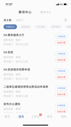 5.提供OA办公、学校新闻、通知公告、会议安排、个人电子邮件、校园微信公众号资讯聚合、全景校园、一卡通查询、西财校历、党建学习、教师主页、学生缴费等校内服务。