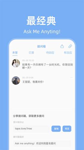 友达提问箱全新上线,有最经典的Tape提问箱,还有超好玩的后院玩法,快和你的朋友一起来玩~