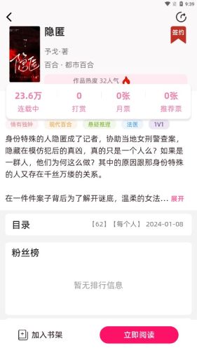 百合小说是一个以百合为主的原创小说文学平台,平台有海量现代、古代、幻想类型的百合小说。在百合小说,你可以找到大神经典、新人佳作,也能找到火热连载精品小说。