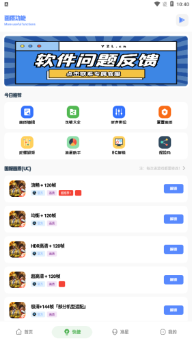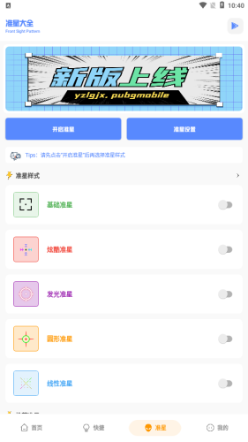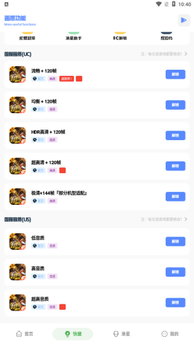 1、该软件的功能还是很多多的,画质编辑、灵敏大全、听声辨位、脱落超频、准星助手等。