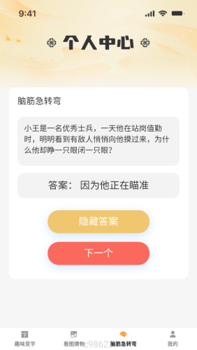 在APP中不仅可以玩到猜字、脑筋急转弯等游戏,还能体验看图猜物的内容