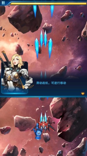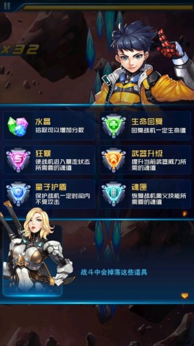 2、在空中控制自己的战斗机,左右滑动屏幕移动位置,点击屏幕发射子弹或使用技能;