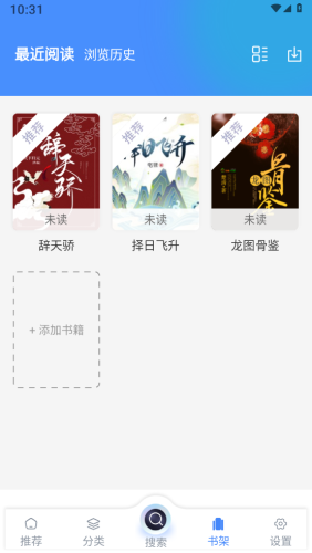 3、书架用于把你正在看或看过的小说放在这里,方便下次直接打开。