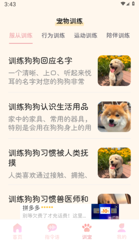 2、有不同的宠物训练相关的知识可以了解,让你更好养宠物。
