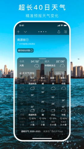 40天中国大陆天气、历史天气、多图片天气主题、16项生活指数、3D超美天气图标