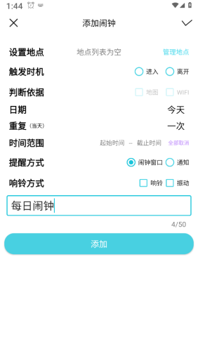3、能够根据地点设置提醒,让闹钟不会因为时间结束而停止。