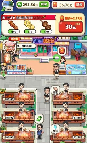 作为一个烧烤摊的老板,玩家可以制作出美味的烤串、烤肉等食物,只要完成了客人的订单,那么就能得到足够的红包。