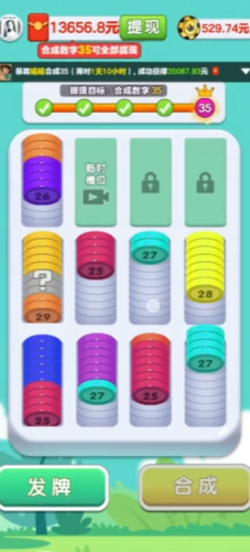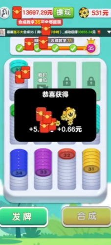 一个筹码合数字小游戏,简单玩几关拿0.5左右红包。