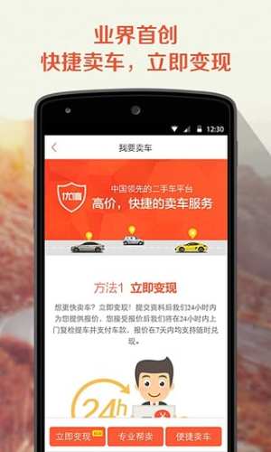 5、个人卖车支持“立即变现”、“专业帮卖”和“便捷卖车”,其中“立即变现”可以24小时内协商价格,接受价格之后24小时内上门复检提车并支付车款,解决您的燃眉之急。