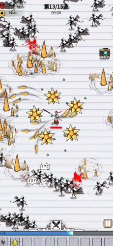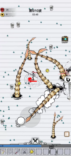 动作roguelike类割草游戏。玩家可以化身火柴人击败敌人,在纸上作战,驯服恐龙蛋坐骑,还有武器可以收集。需要通过升级搭配技能、强化属性以及灵活的走位躲避操作来抵御敌群侵入,获得通关
