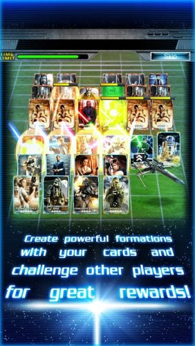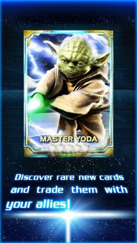 以达斯•维德(Darth Vader),路克•天行者(Luke Skywalker)为代表的,超过400个角色登场。收集角色及载具卡牌,组合独一无二的最强战队。利用卡牌附带的技能及攻击值,加上原力的运用所组合的牌组,才能够发挥每一张卡牌的真正价值!完成最强卡组,接受挑战吧!