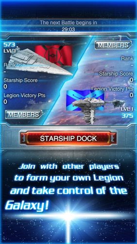 星球大战超魄力的宇宙飞船对战将从这里开始。与世界各地的星战迷合组军团(Legion),与其他军团(Legion)即时对战!集合队友之力强化宇宙飞船,夺取胜利去获取更加强大的飞船。加入军团(Legion),既可与队友进行友谊赛,也可以使用队友间的即时通信增强队友之间的合作!