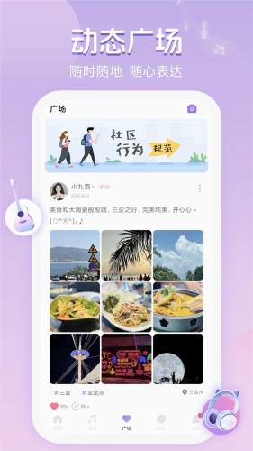 3、【广场动态】在广场上发表动态,分享生活、心情和创意,与全球用户互动,随时随地,想发就发。