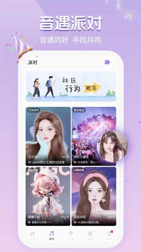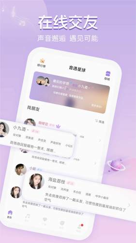 音遇星球app,语音速配,匹配更多有趣对象,在线沟通,分享动态,随时随地在线沟通,加入感兴趣的语音派对,与网友一起畅聊,认识志趣相投的人。