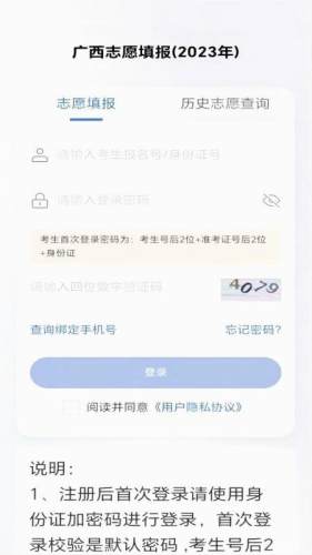需要输入考生报名号等相关信息来登录后即可进行志愿填报使用。