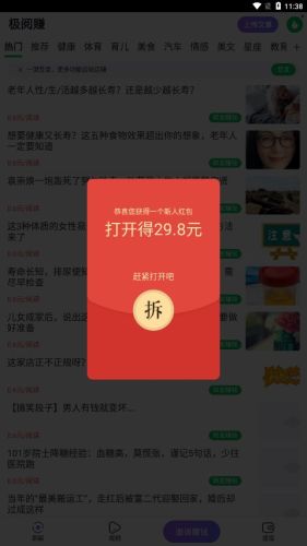 极阅赚app,手机转发文章赚钱的APP,汇聚超多文章,转发赚收益,推广赚取更多佣金奖励,阅读、分享赚现金,新人打开即可领取红包奖励,提现轻松赚钱快。