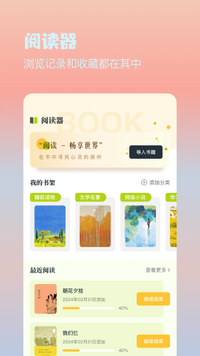 掌上阅读app,本地电子书阅读软件,一键导入书籍,在线管理,随时阅读,提供阅读打卡、阅读笔记记录功能,随时享受贴心的阅读体验,本地阅读更轻松。