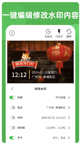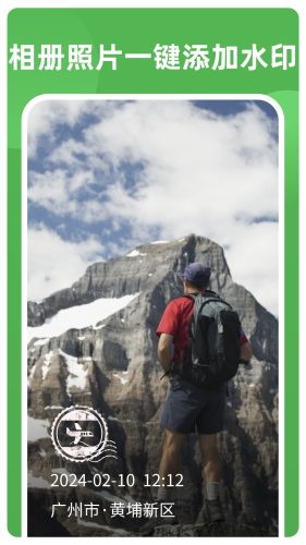 海量自定义水印模板,一键拍照加水印,自定义水印内容,可修改可编辑可移动。