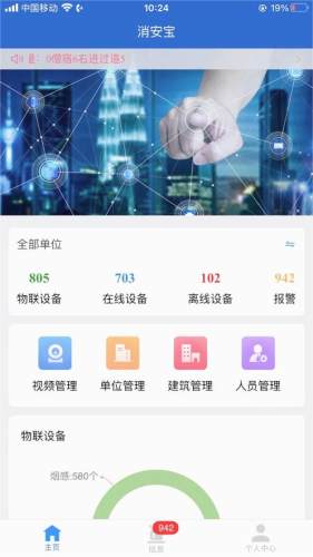 消安宝app,智慧消防管理平台,连接智慧消防设备,在线控制管理,随时查看设备状态,实时监控,智能分析,及时发布预警信息,高效处理。