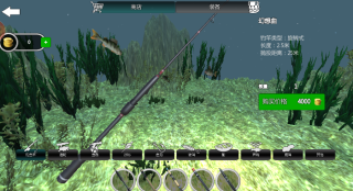 5、游戏中共有蓝色、紫色以及金色传说鱼竿,新手玩家选紫色史诗鱼竿即可,并多加升级强化。