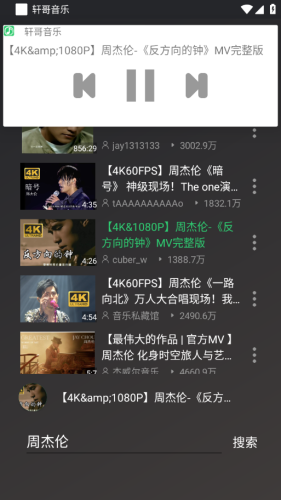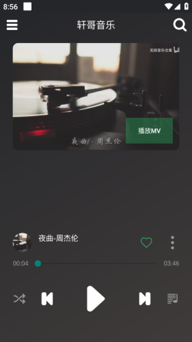 轩哥音乐APP一款免费的安卓应用,小巧免费收听音乐,所有音乐来自第三方网友上传的mv而形成的音乐,下载自动转换为mp3。海量音乐资源想搜就搜,随意下载,各种类型都能搜索到。