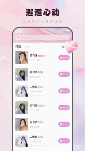 探探app下载安装2024手机版133.9M14907人在玩探探APP,开启社交新方式。专注于陌生人交友,以最简单的但是发现你身边喜欢的人。同时你也不需要担心会被陌生人骚扰的问题。你们只有互相关注喜欢了,才能开始聊天。语音、文字、图片、视频,多样的聊天方式,任你选,只要你喜欢!