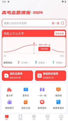 使用阳光高考智能填报模拟系统,报考大学、升学规划、兴趣测评、一对一志愿咨询、等升学路径e网通,一个APP就能了解相关资讯。