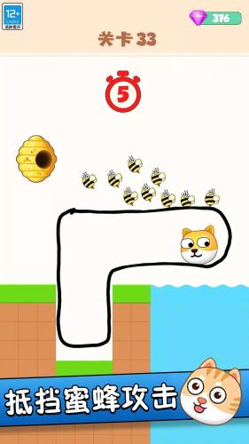 2、看你是否能够顺利拯救狗头,动动手指来画线吧;